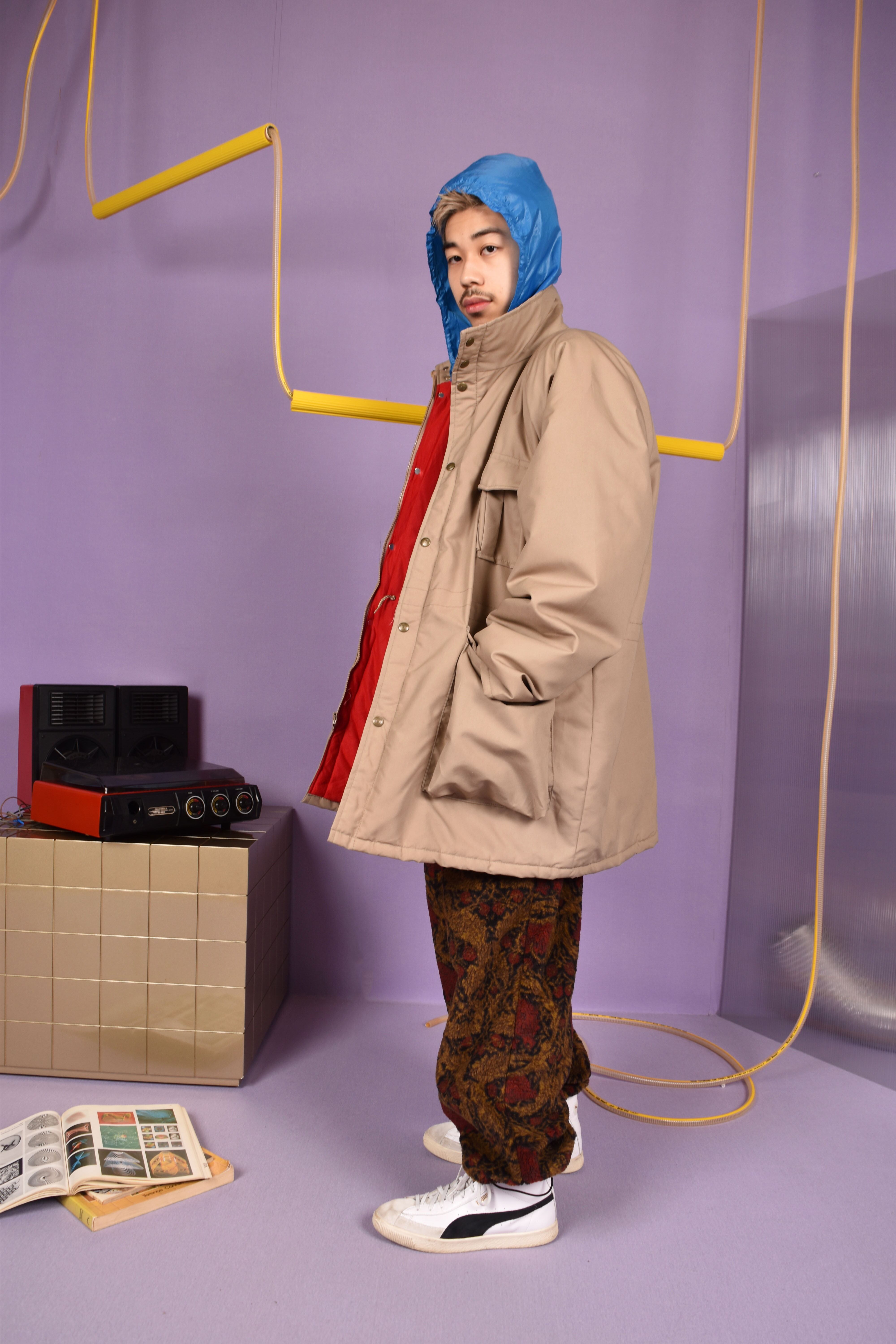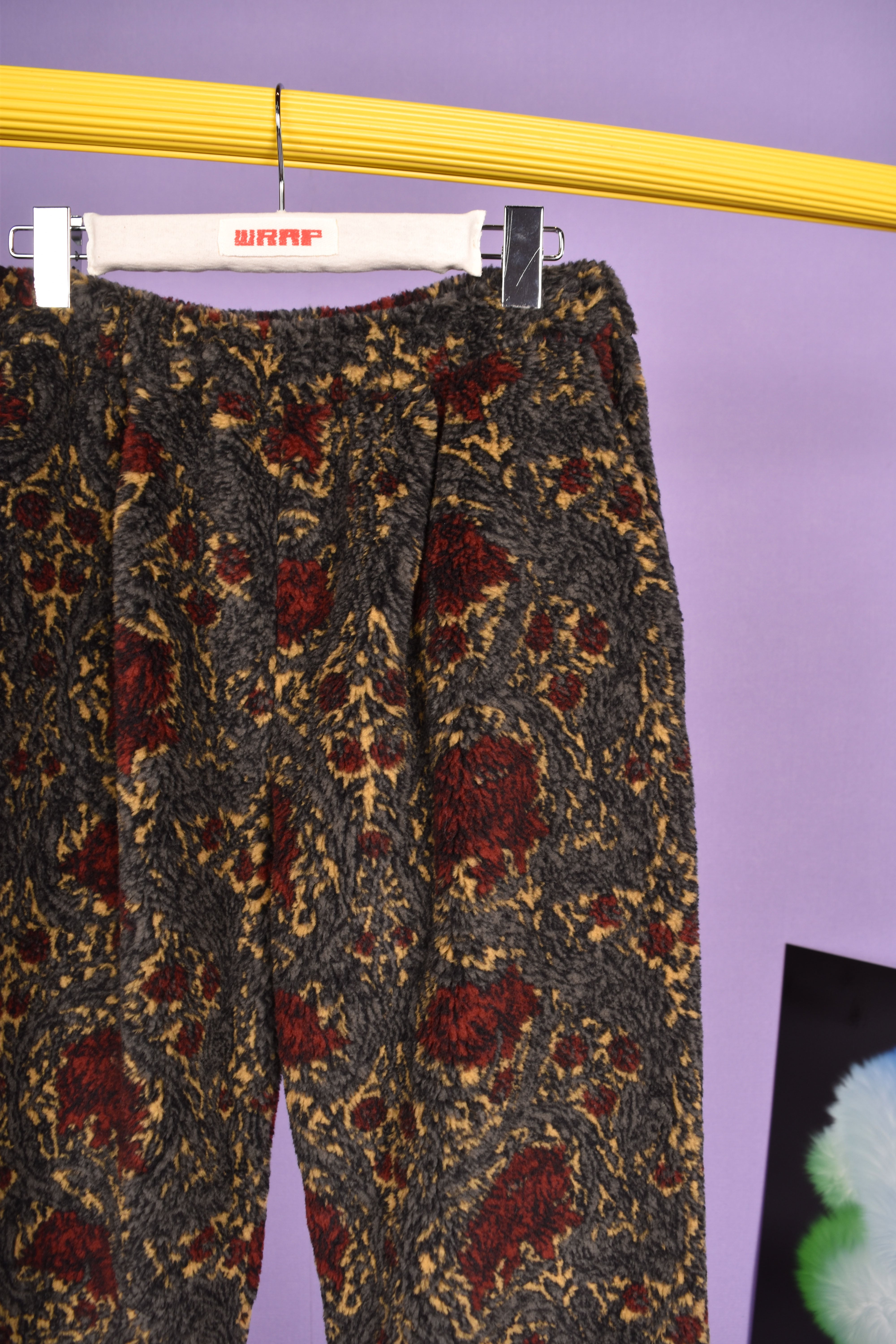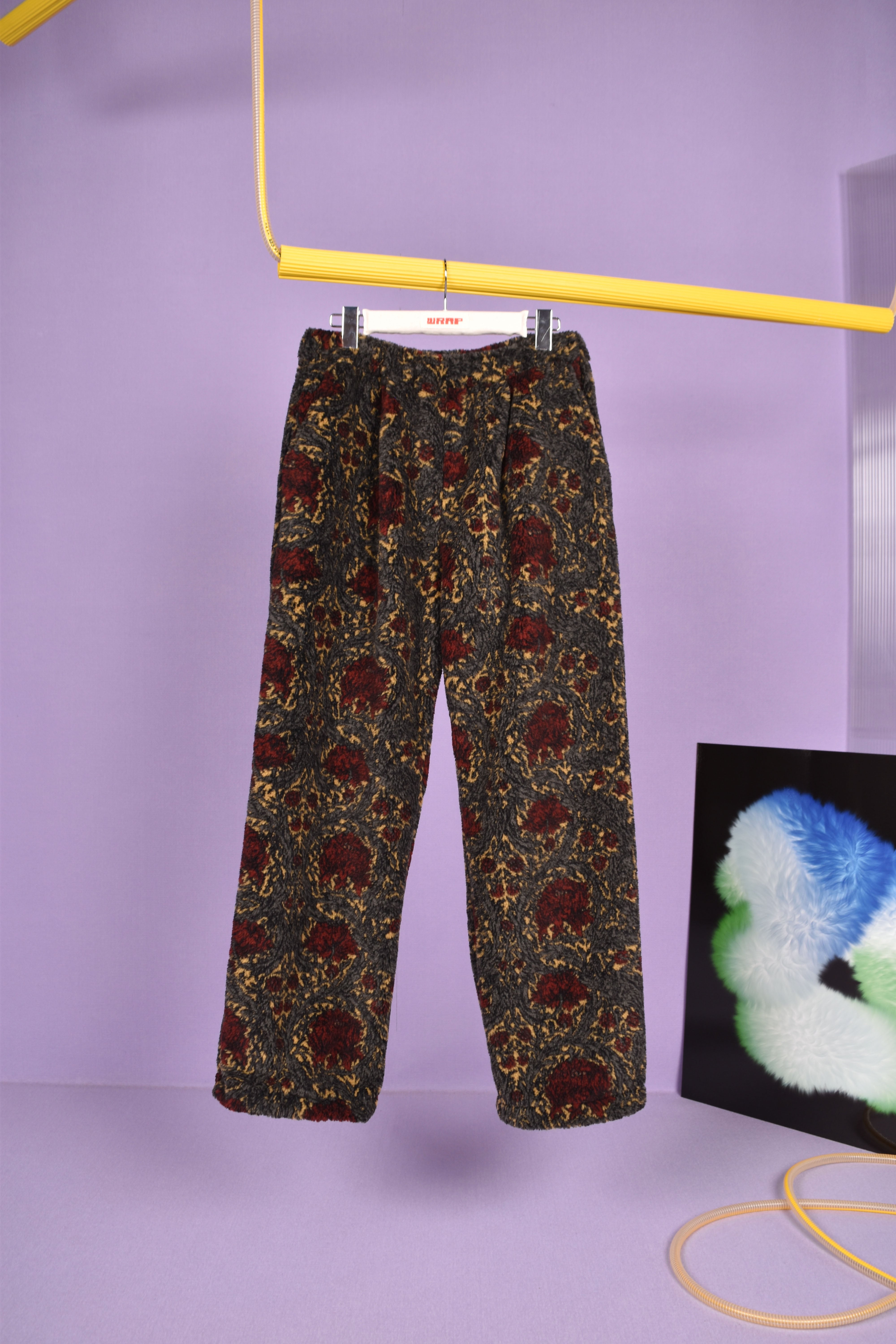 珍しい総柄のボア生地を使用したイージーパンツ。軽量で非常に暖かく冬に大活躍な1着。ウエストはゴムと紐で調節可能。また裾を絞る事でコーディネートに合わせたシルエット調整ができます。ユニセックスで着用可能です。