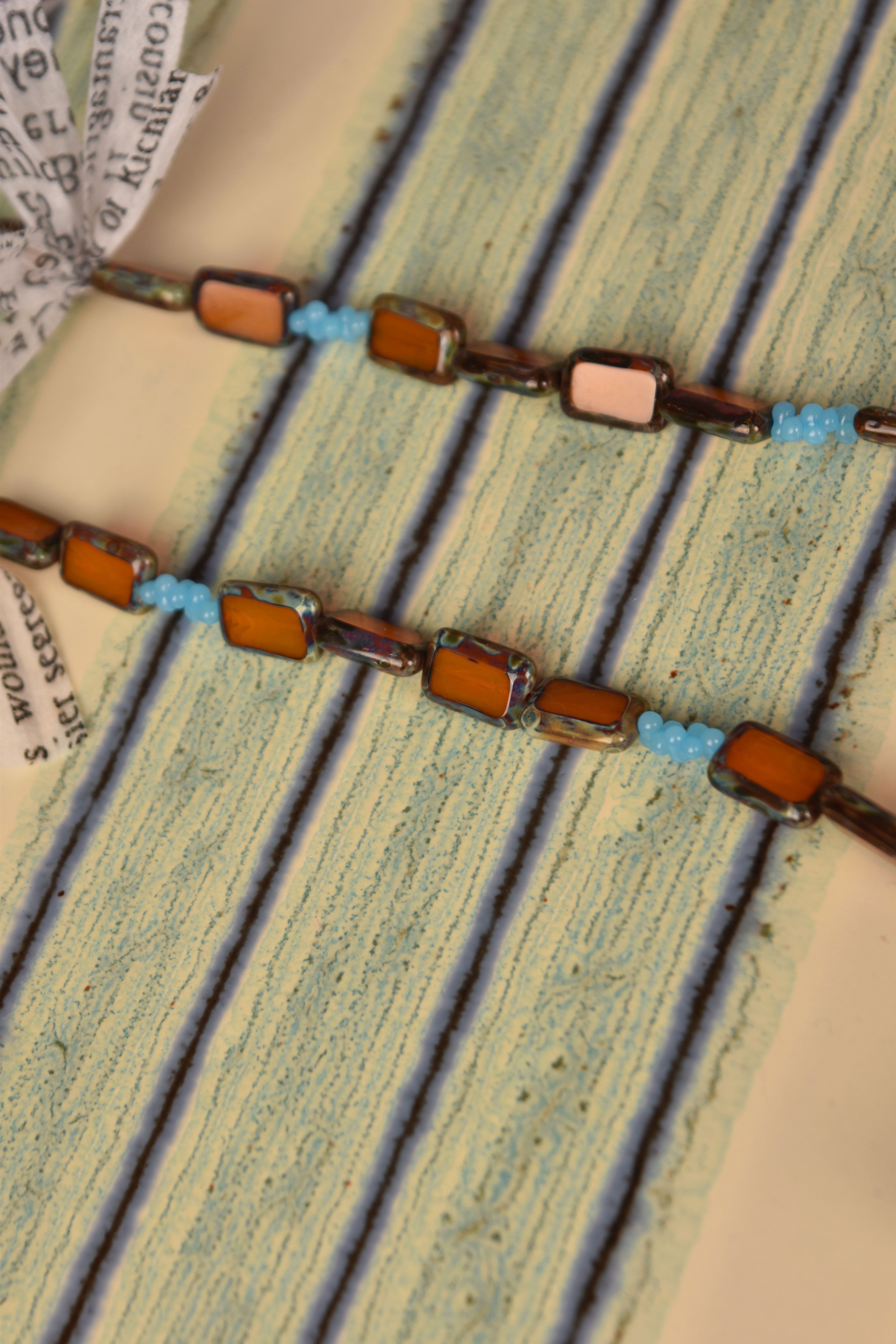 ANTIQUE GLASS BEAD NECKLACE/L.BROWN SQ