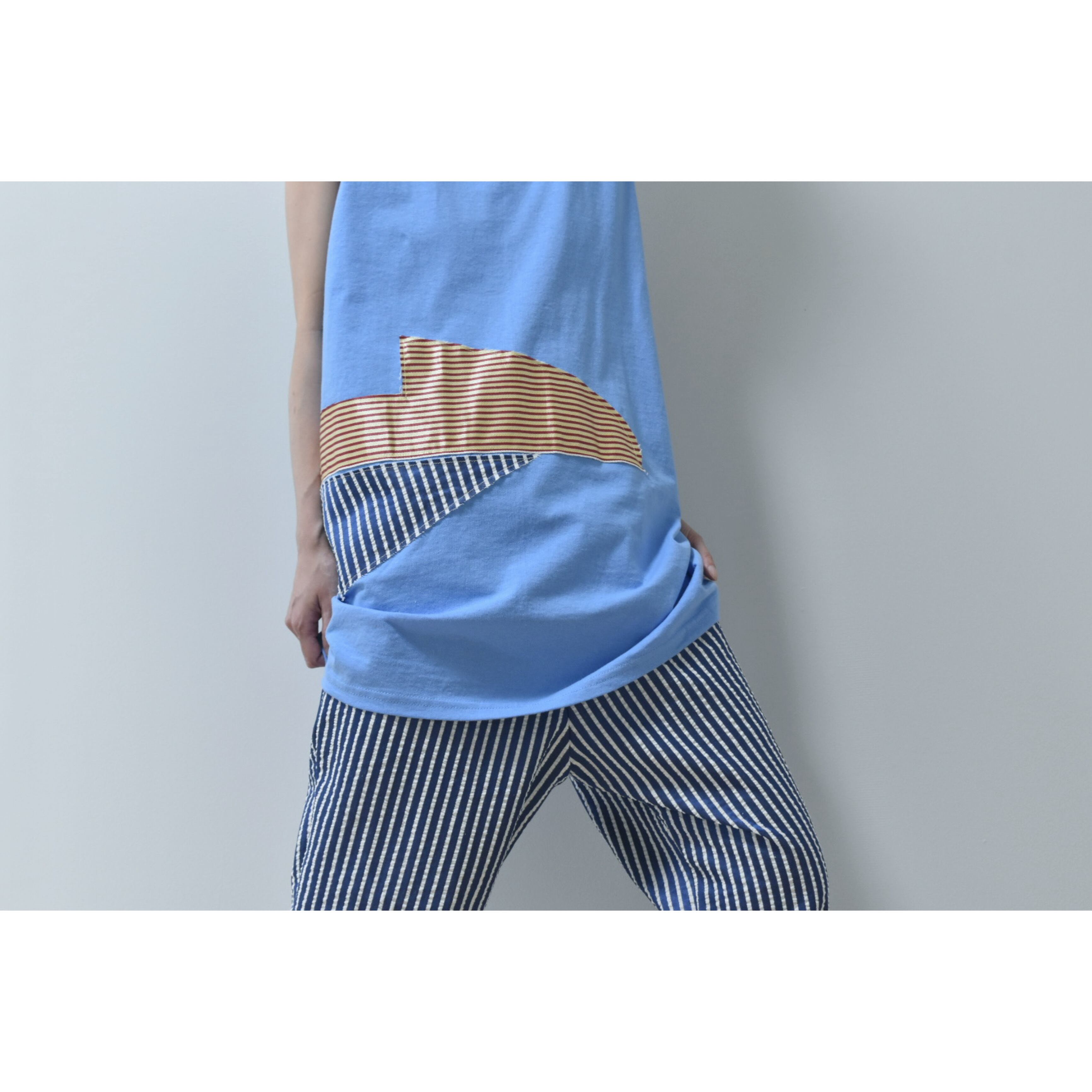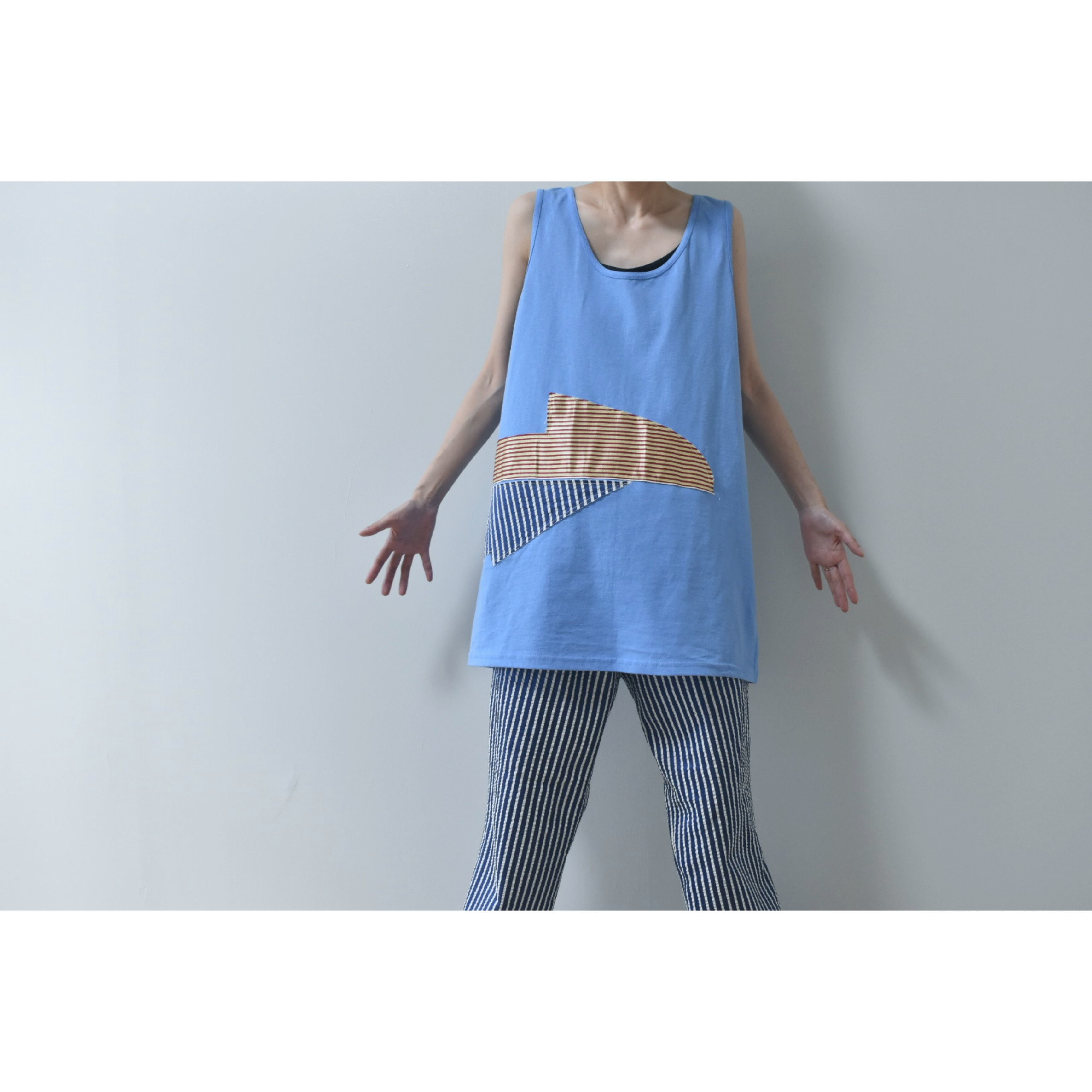 wrap patched tank top (carolina blue×red/blue stripe,unisex)