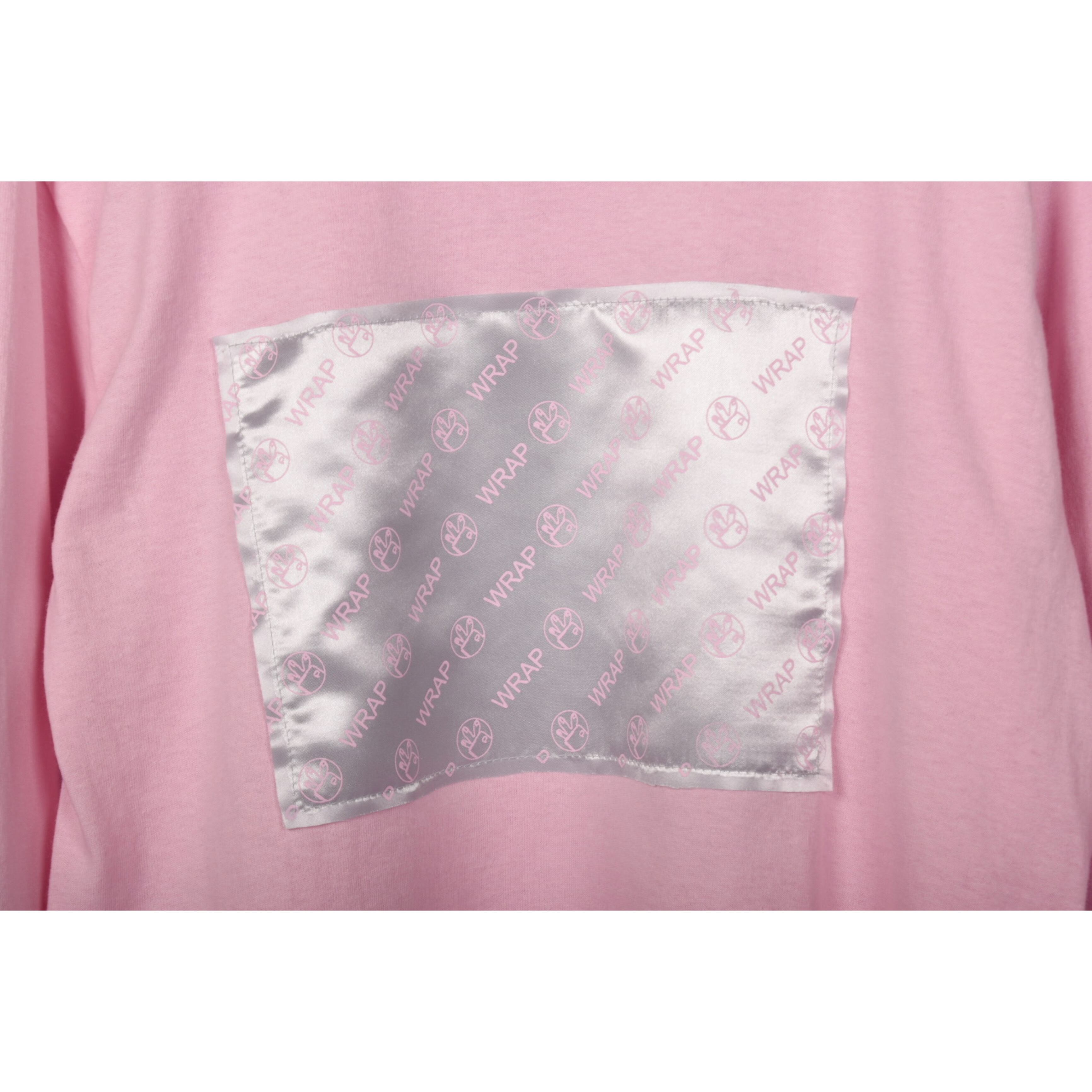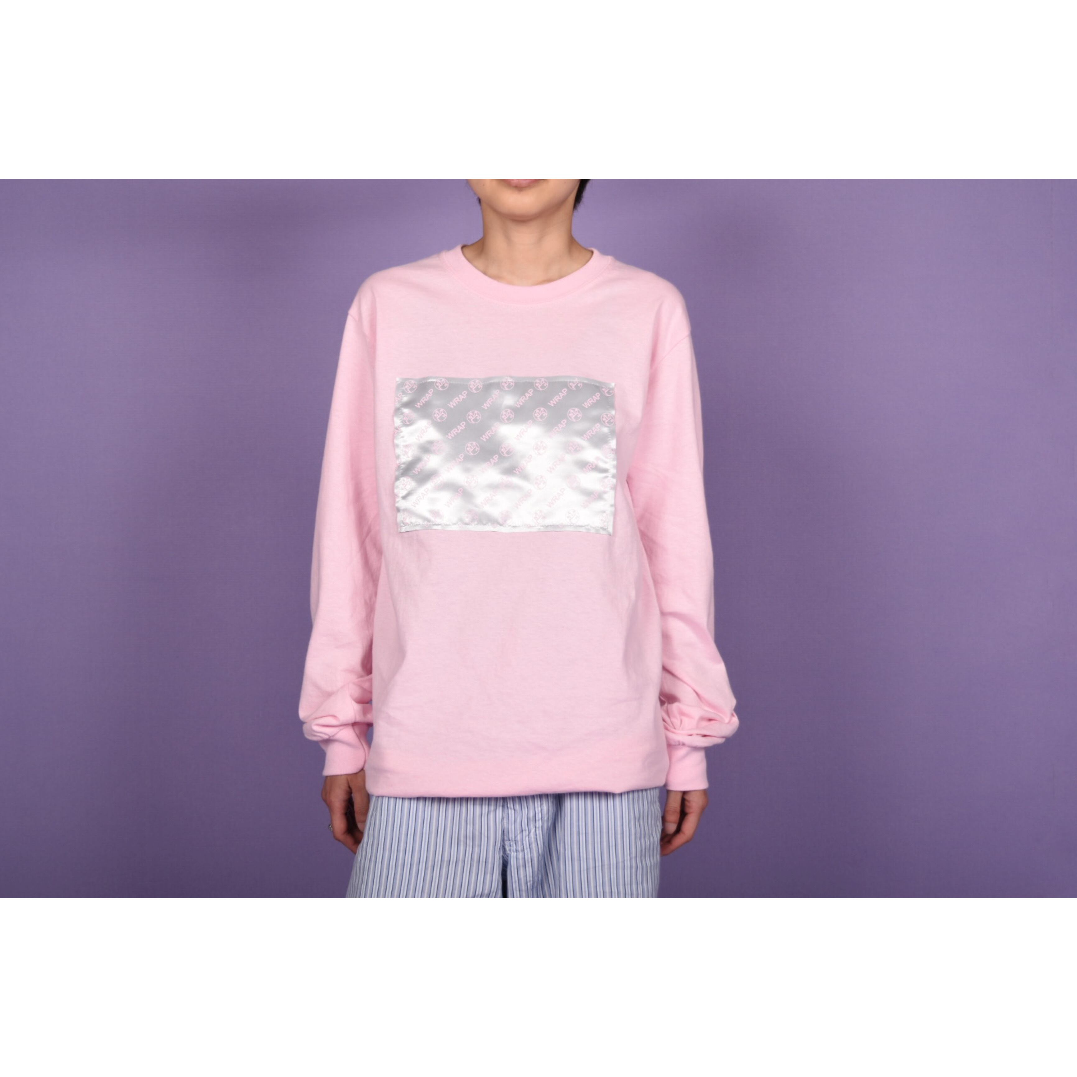 シルバーのサテン生地にピンクで総柄プリントを入れています。世界に一枚だけのデザインとなります。ワンサイズ展開、女性向けのサイズです。