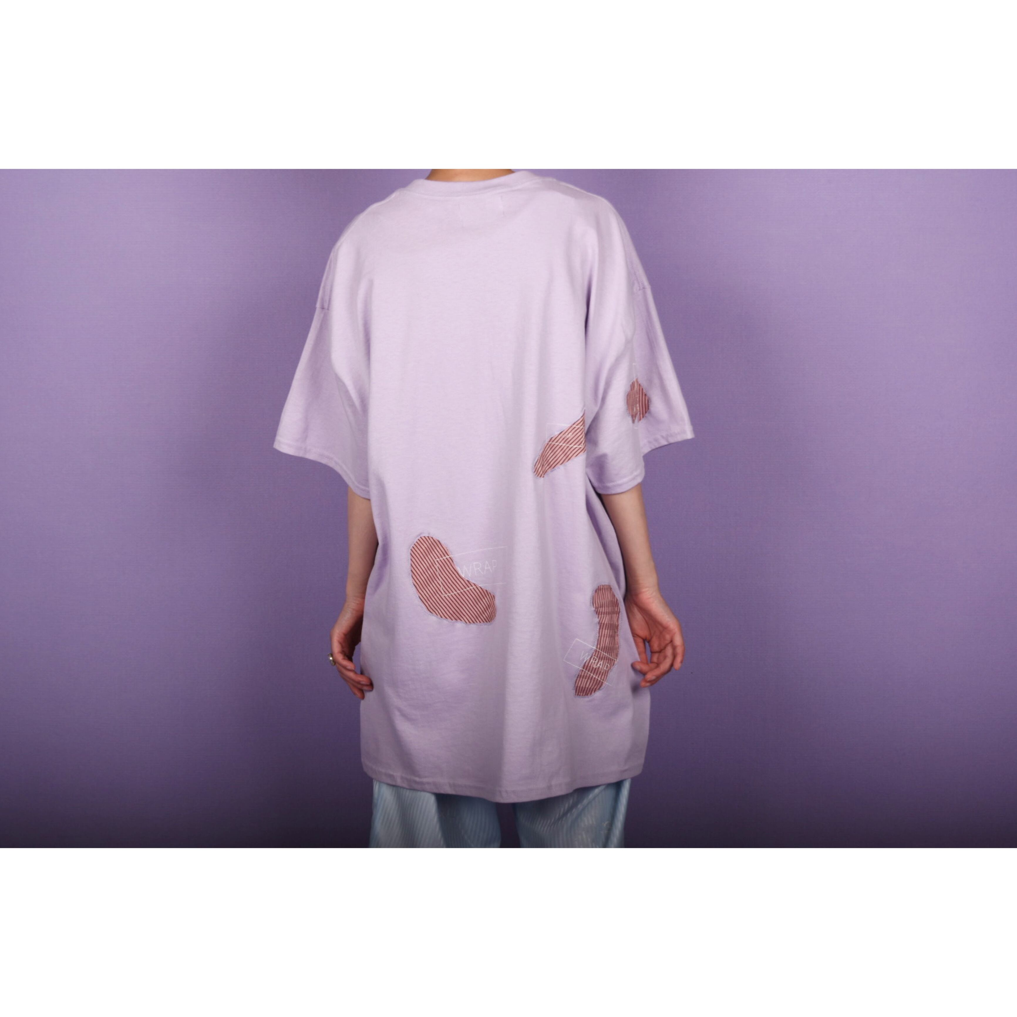 生地でデザインしたTEEです。テキスタイルの上にWRAPのロゴプリントが入っております。オーバーサイズで女性が着用しても可愛いです。ユニセックスです。