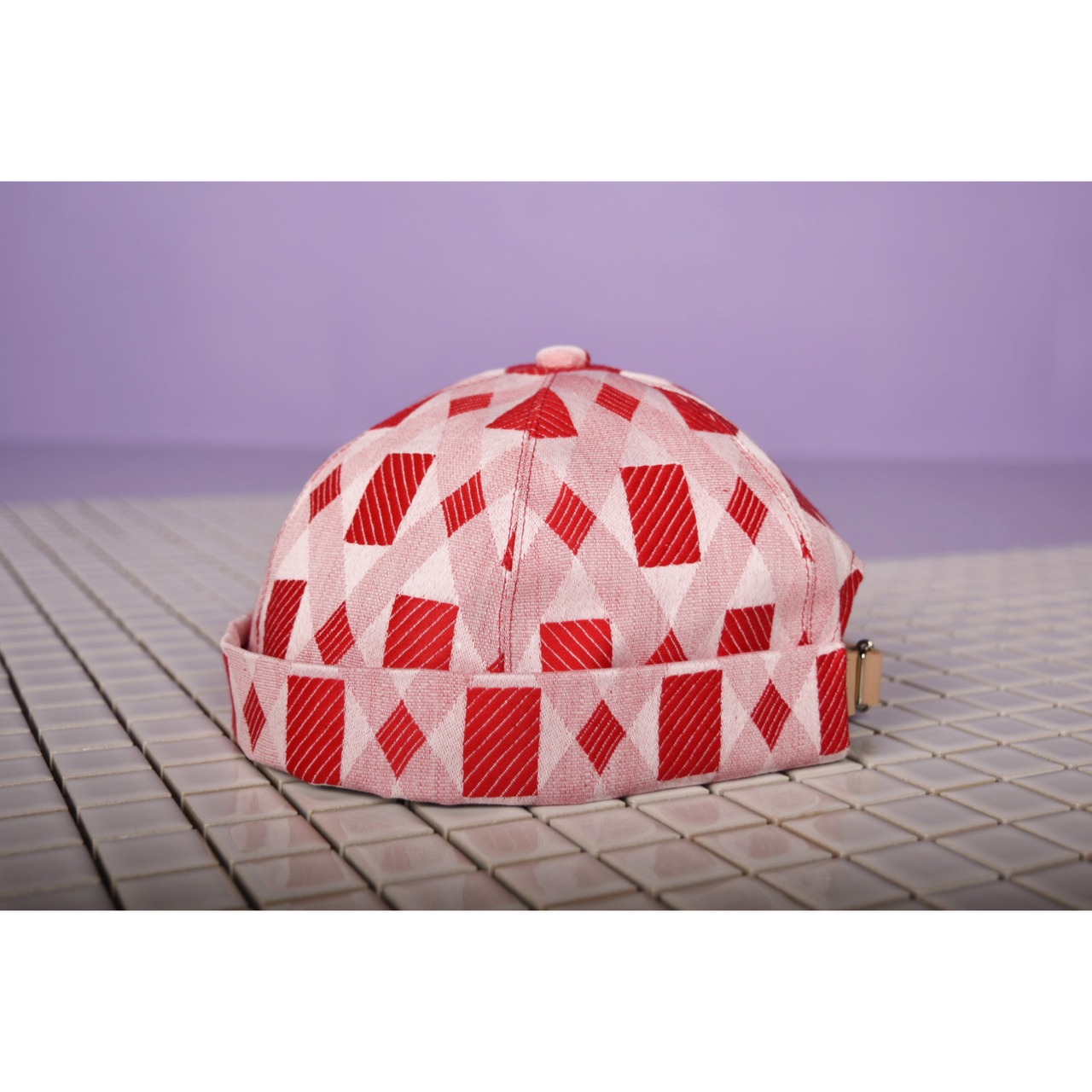 オリジナルパターンでフィッシャーマンキャップを製作しました。こちらは特殊な織機を使用した美しいジャガード生地を使用しております。レザー製のアジャスターでサイズ調整も可能なのでユニセックスで着用できます。